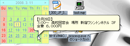 色の変更ができたりスケジュールを入れるとこんな「バルーン表示」になります。
