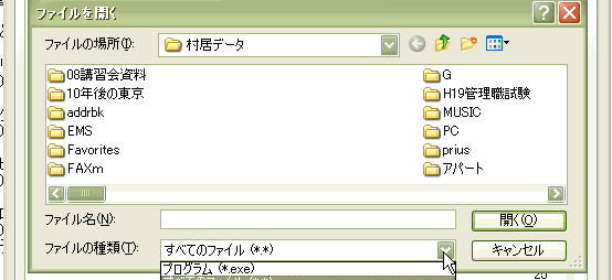ファイルの種類を「全てのファイル」にして、